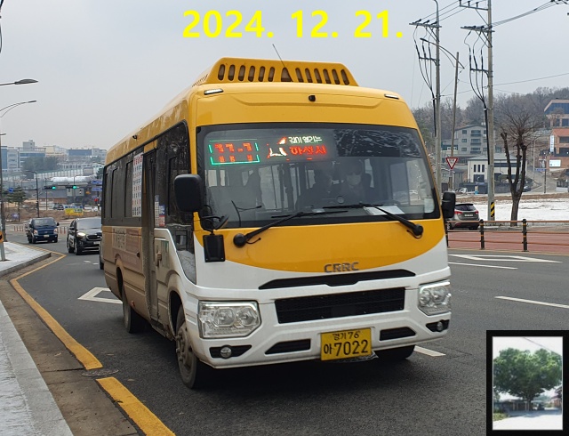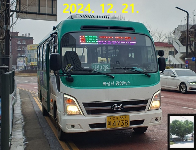 차량은 옛날에 있었던 버스 차종인 콤비와 비슷하게 생긴 전기버스였는데, 고양 마을버스에서 보았던 짱깨 전기버스들 중 하나인 CRRC 그린웨이 720이었습니다. 이 차종은 문짝 열리는 방향만 개선된 선롱 두에고(※)나 다름없지만, 어찌됐든 지금 이 노선을 타지 않으면 또 수십 분을 기다려야 겨우 13-2번 또는 13-4번으로 발안을 가야 한다는 문제가 발생하니 하는 수 없었죠.